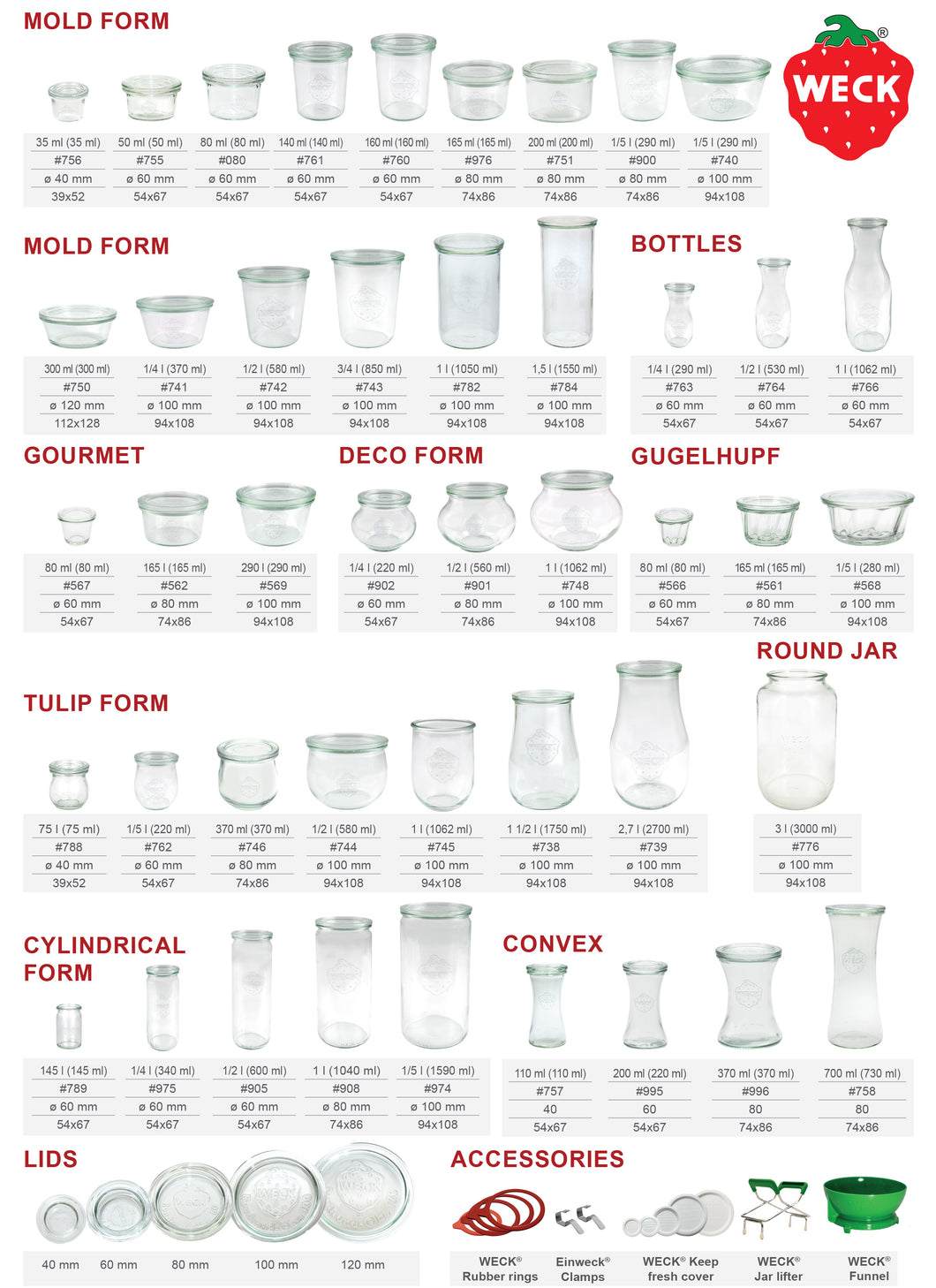 Weck Deli Serisi 4 boy içerir. 100 ml , 200 ml, 370 ml ve 700 ml